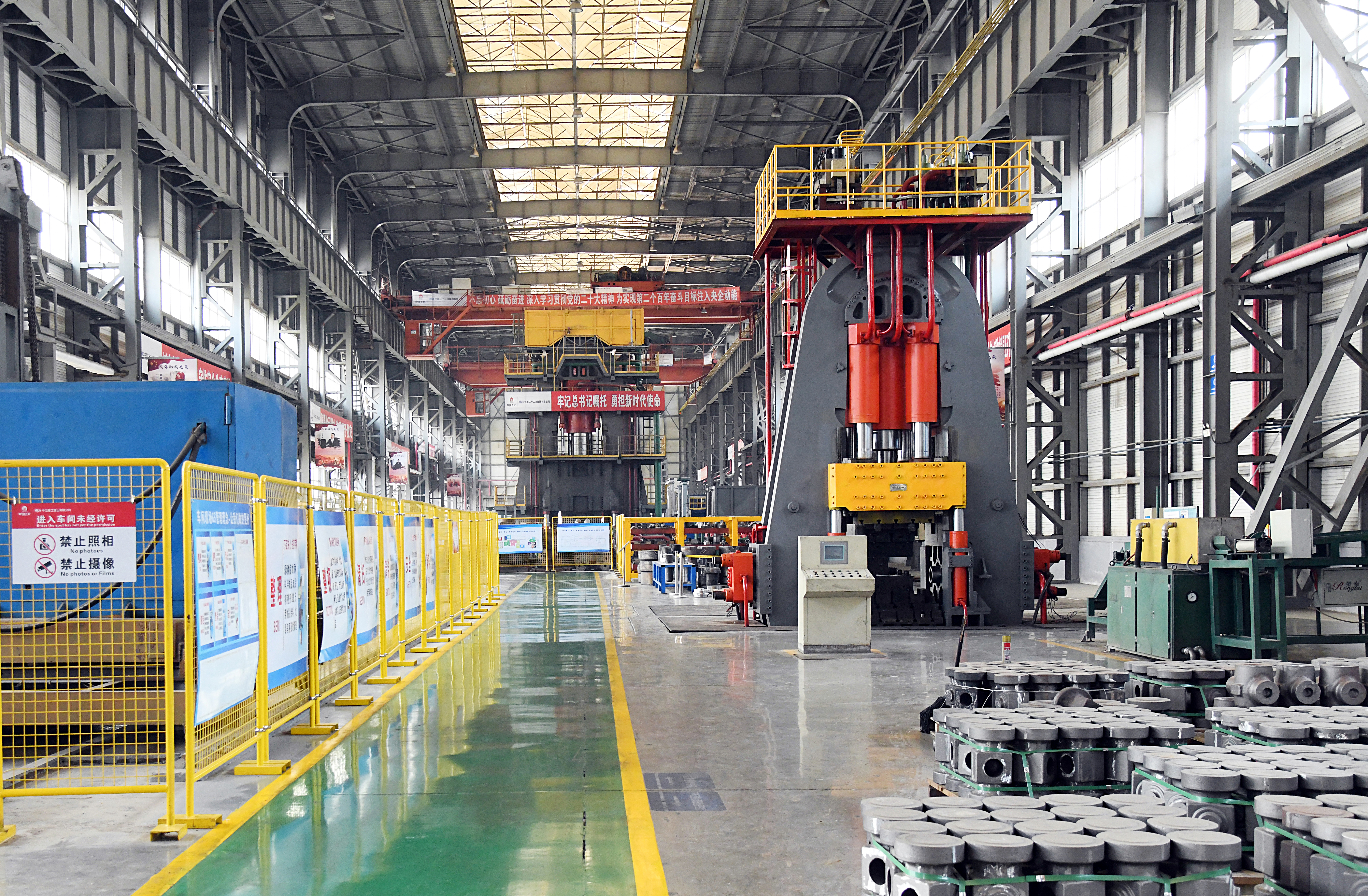 由中國二十二冶生產(chǎn)的重型壓機及產(chǎn)線擁有預(yù)應(yīng)力鋼絲纏繞、特重型設(shè)備原位安裝、厚板焊接等核心技術(shù),產(chǎn)品涵蓋(多向)模鍛液壓機、板片成型液壓機、換熱片壓機、海綿鈦壓機、特色中小型壓機等工藝生產(chǎn)線及配套設(shè)備。產(chǎn)品榮獲國家科學技術(shù)進步獎、國家優(yōu)質(zhì)工程獎、冶金科學技術(shù)獎、魯班獎等多項榮譽。